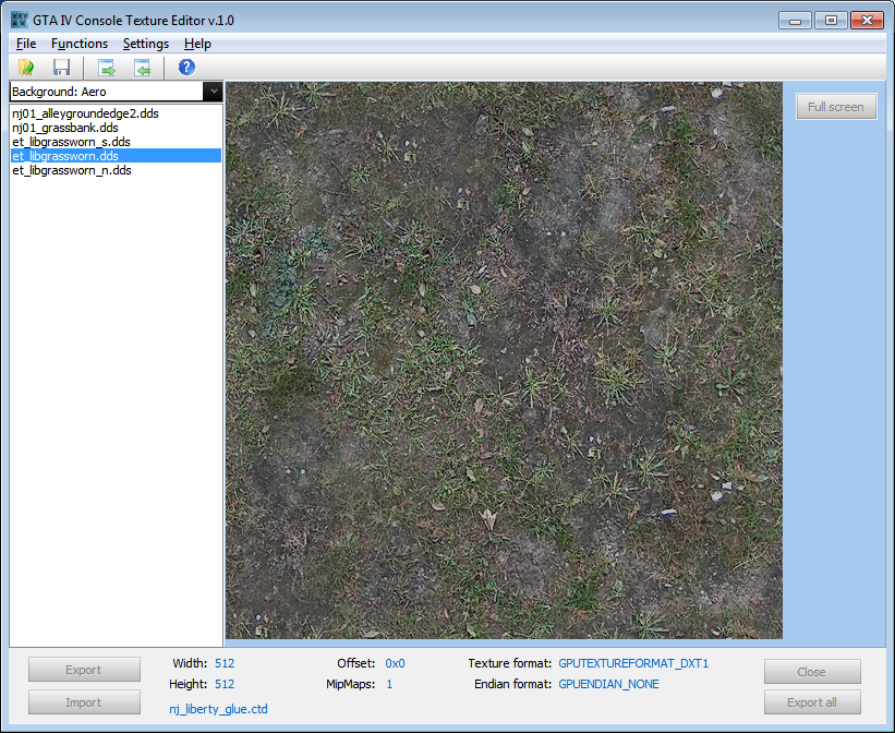 Вот фрагмент из Манхеттена, статуя Либерти и скала из глубины img архивов, привязанных к районам города с PlayStation 3 версии. C xbox360 версии вроде бы ничем не различается, а с пека частично да, на пк многие текстуры детальное и выше разрешение, не помню насчет степени сжатия dds... вроде одинаковая везде. На консолях еще больше архивов, чем на пк для оптимизации.А утилита способна поддерживать текстуры игровых архивов города?(east,manhant и прч.)