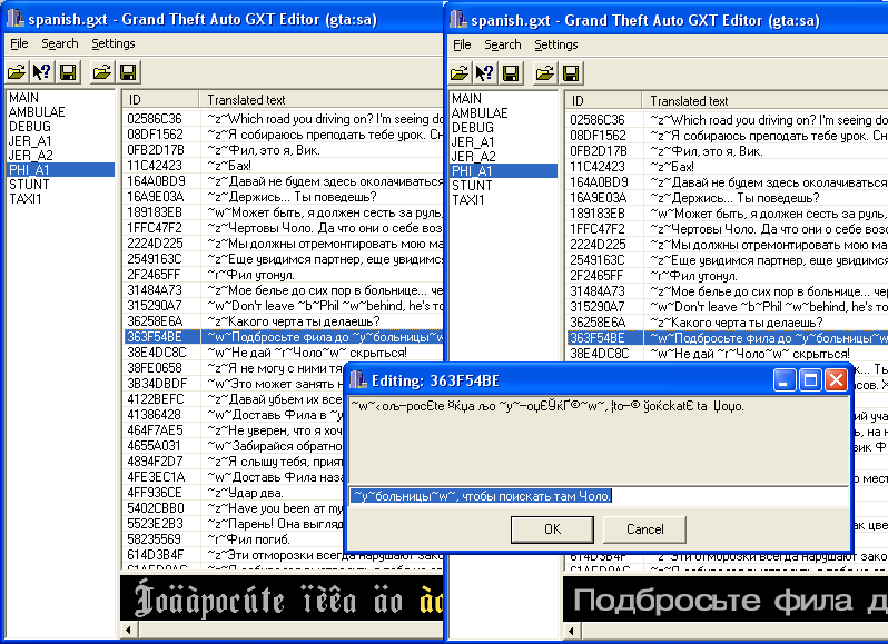 вот моя личная кодировка (первая строка в GXТ-редакоторе, вторая оригинал)